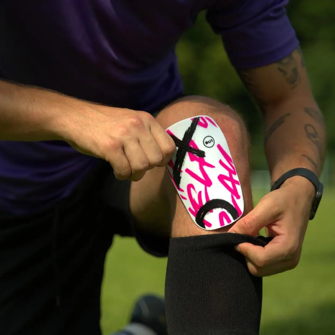 - Répétez le processus avec le deuxième protège-tibia : Répétez la même procédure avec le deuxième protège-tibia.