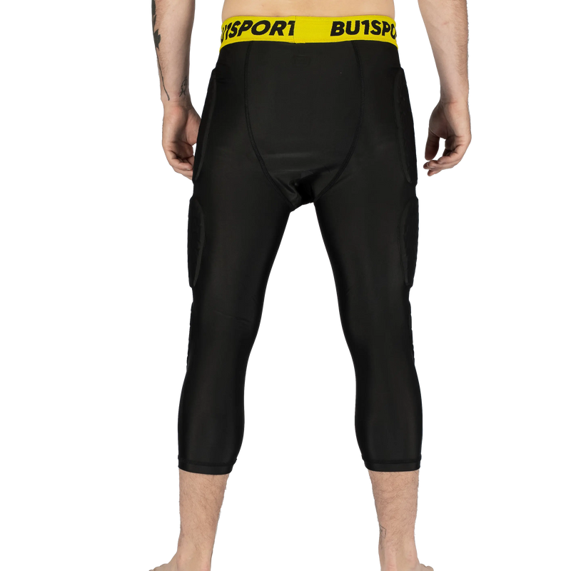 BU1 Leggings întărite 3/4 negre 2.0 sunt alegerea ideală pentru portarii care doresc protecție maximă și libertate de mișcare în același timp. Noua generație aduce amortizare îmbunătățită a șocurilor, o construcție mai rezistentă și o suprafață de protecție mai mare în zonele cele mai solicitate.